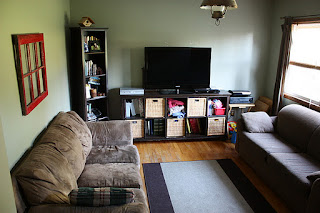 I painted our lower living room. I was aiming for a caramel color and got burnt orange instead. I was pretty nervous about it at first but I've already grown to love it. Check out Before: